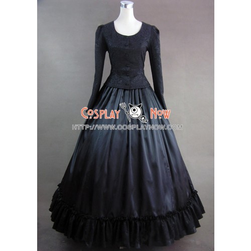 Civil War Victorian Brocaded Ball Gown Black Dress